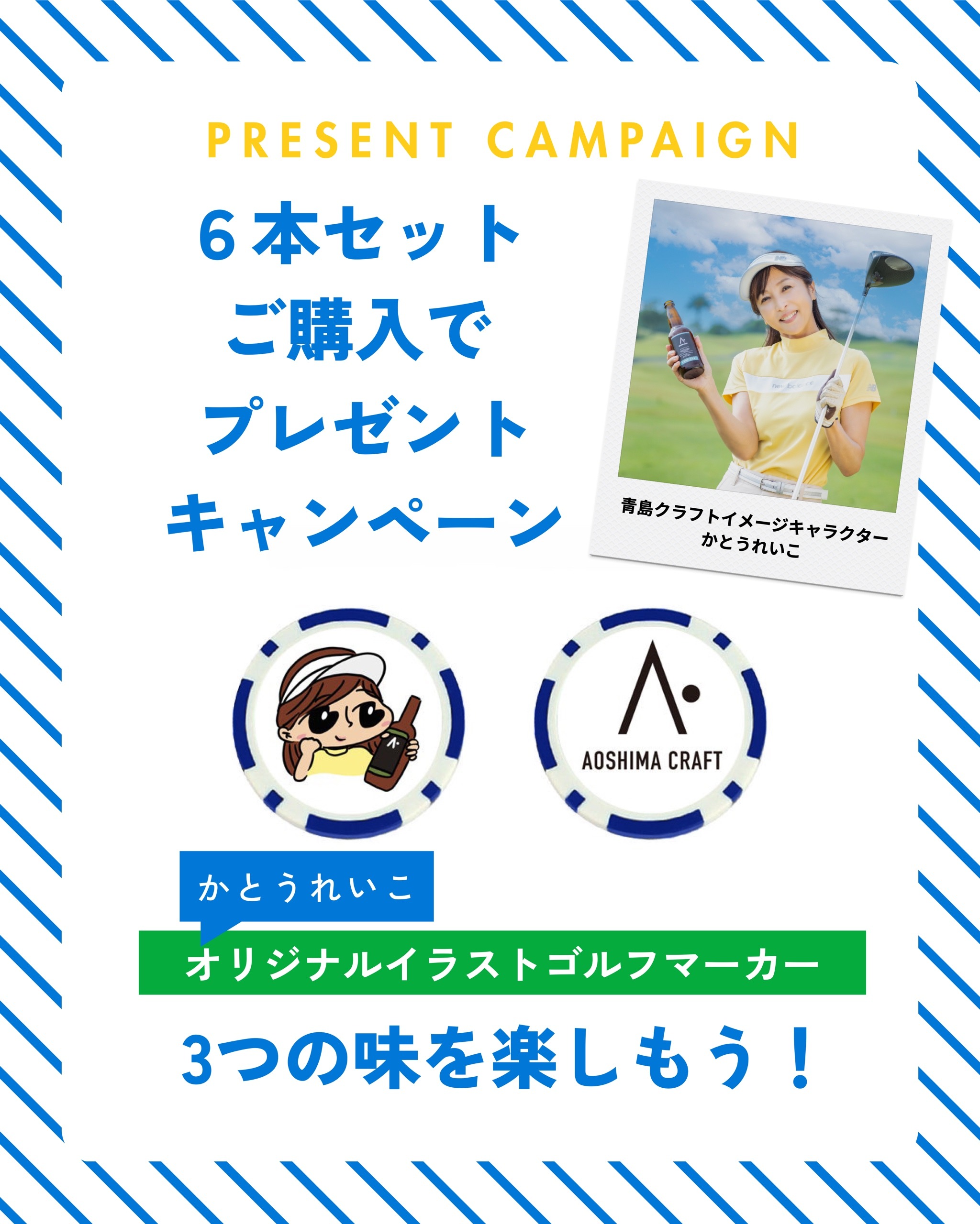 青島クラフト製品を6本セット以上ご購入いただいたお客様、先着1,000名様に、「かとうれいこさん似顔絵ゴルフマーカー」をプレゼントいたします。